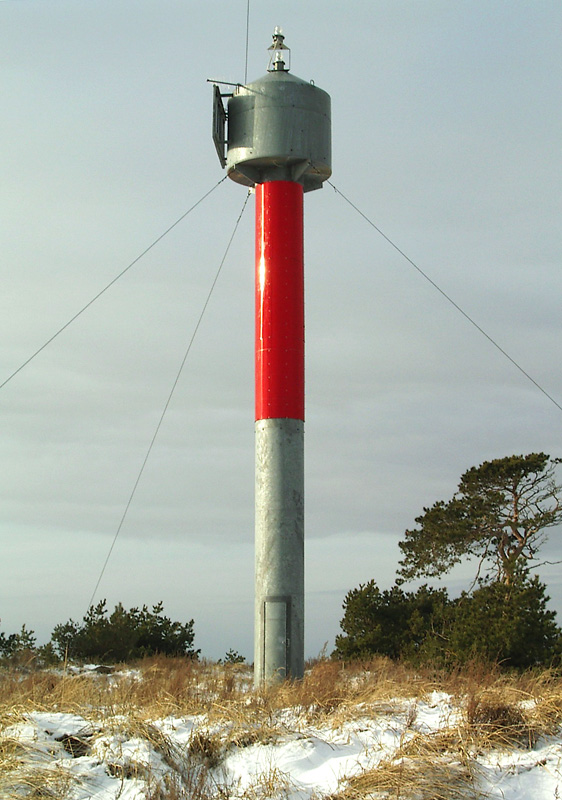 Ülalt punane, alt hall metalltorn. Tipus hall silinder