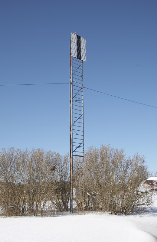 Musta püsttriibuga valge täisnurkne tahvel metallsõrestiku tipus