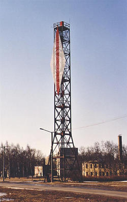 Punase püsttriibuga valge romb metallsõrestiktornil