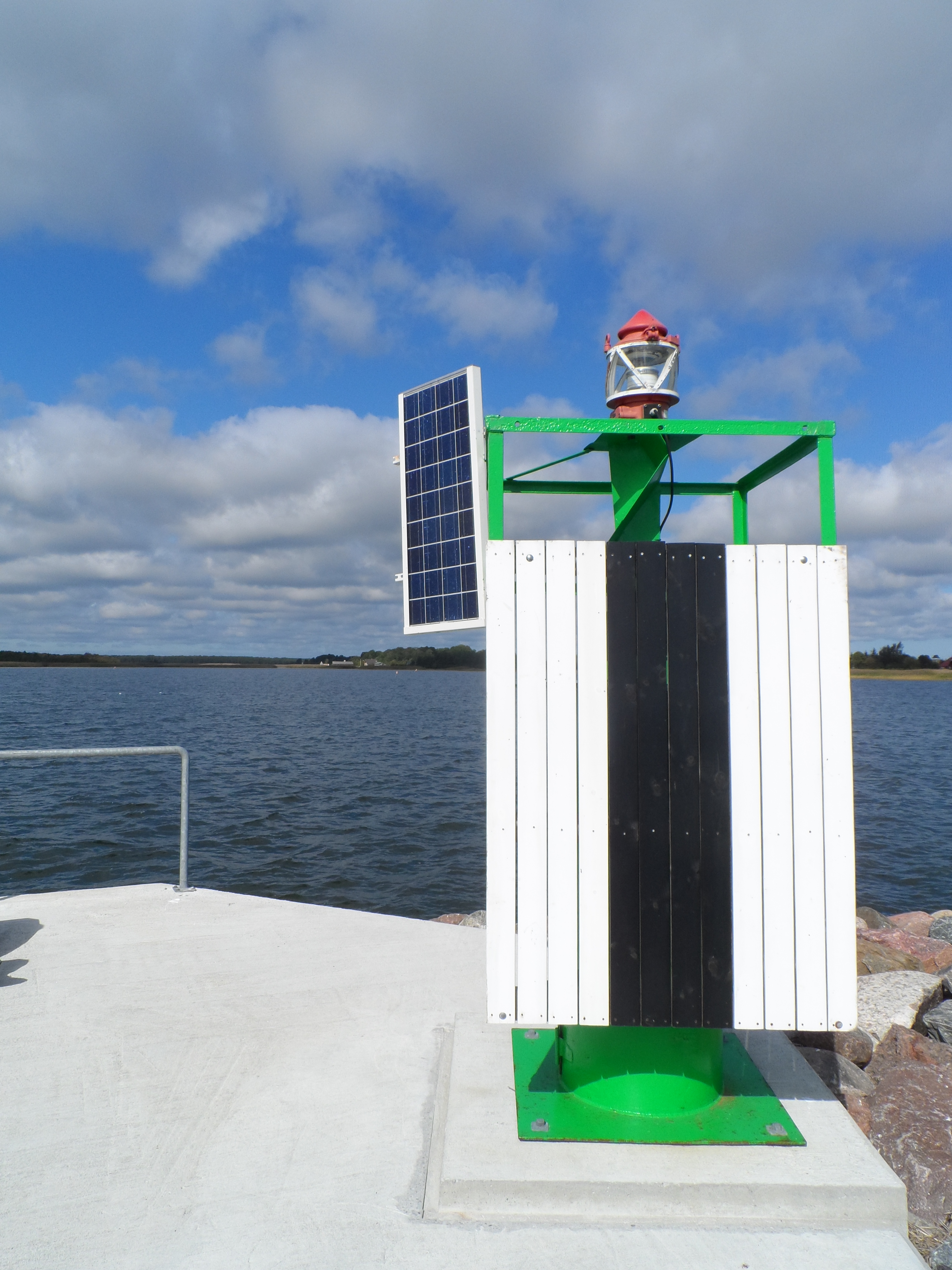 Musta püsttriibuga valge täisnurkne tahvel rohelisel rõduga metallsambal