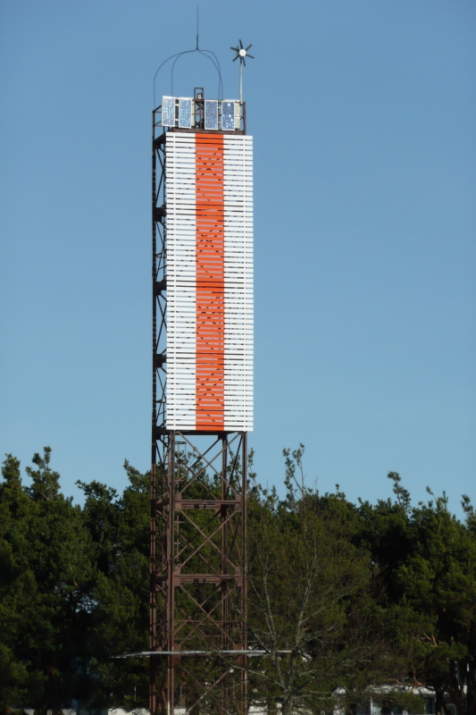Oranzi püsttriibuga valge täisnurkne tahvel metallsõrestiktornil