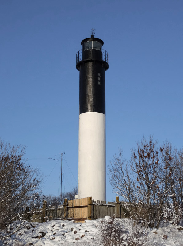 Laternaruumi ja rõduga betoontorn. Ülalt must, alt valge