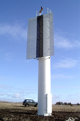Musta püsttriibuga valge täisnurkne tahvel metallsilindril