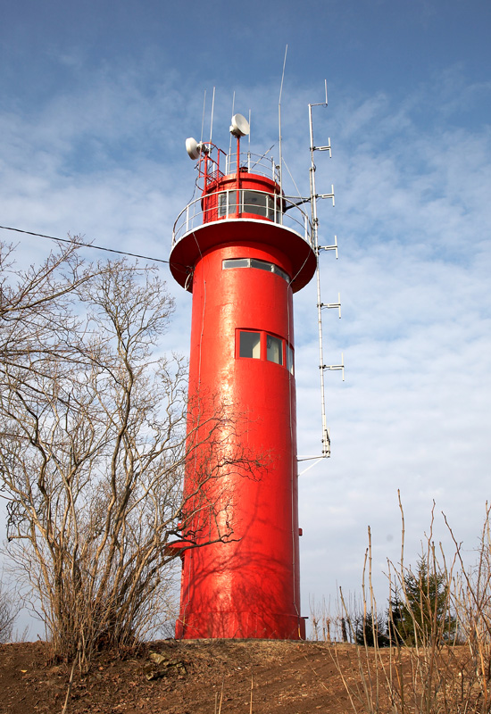 Laternaruumi ja rõduga punane betoontorn