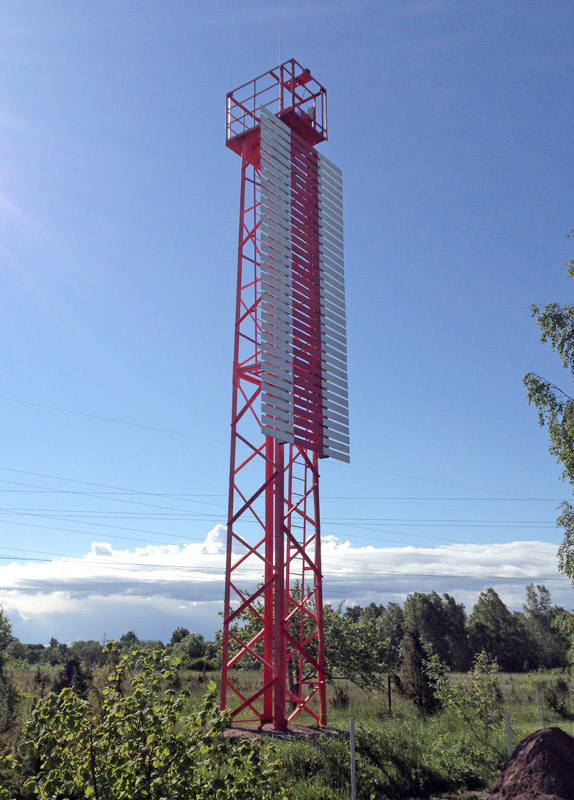Punase püsttriibuga valge täisnurkne tahvel metallsõrestikul