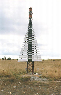 Musta püsttriibuga valge kolmnurk, tipuga üles, metallsõrestikul