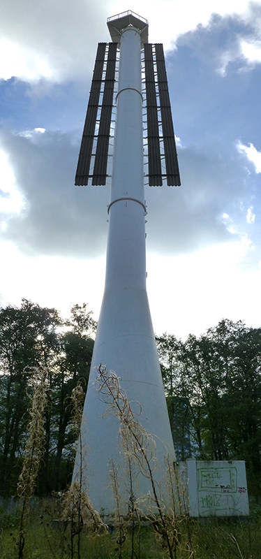Valge metalltorn mustade täisnurksete külgtahvlitega