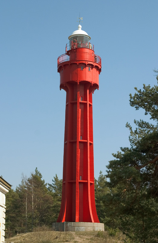 Laternaruumi ja rõduga punane betoontorn