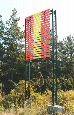 Kollase püsttriibuga oranz täisnurkne tahvel metallkonstruktsioonil