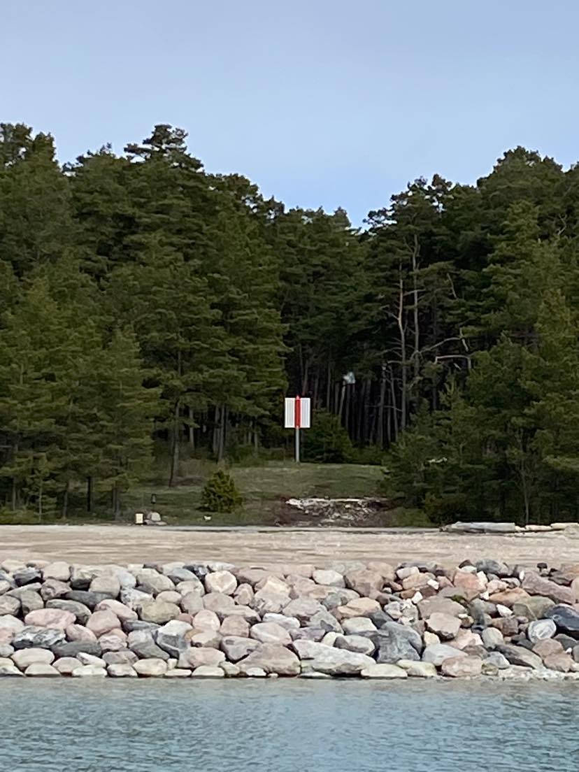 Valge tahvel punase püsttriibuga keskel